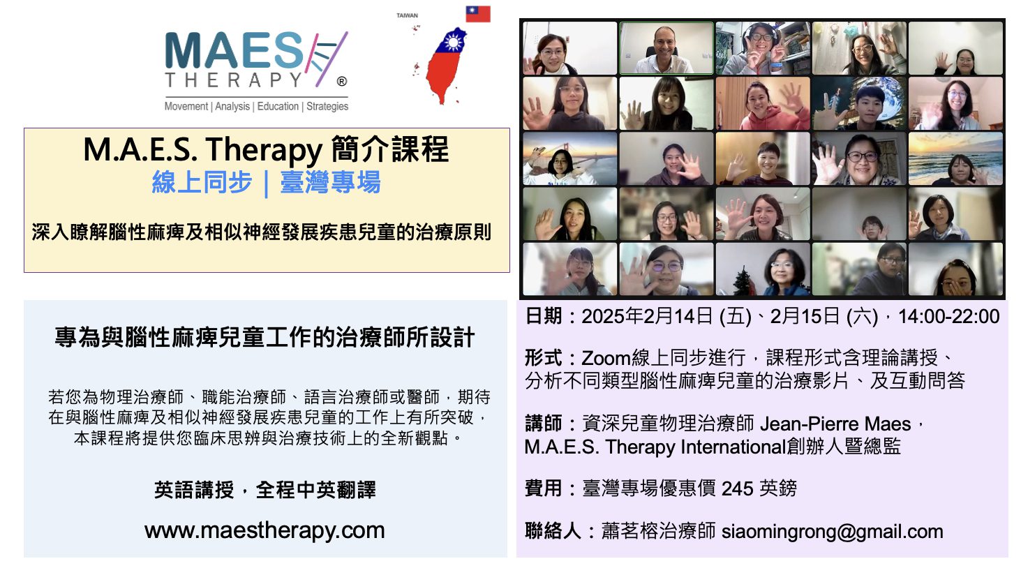 MAES Course: A specialist 4-Week Post-Graduate course for Paediatric Therapists, organised in two parts.