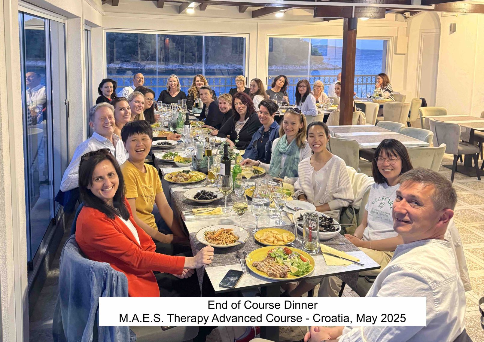 A wonderful international gathering of 23 MAES Trained Therapists from a variety of countries: Croatia, Bulgaria, Hungary, Ireland, Romania, Serbia, Singapore, Taiwan, UK